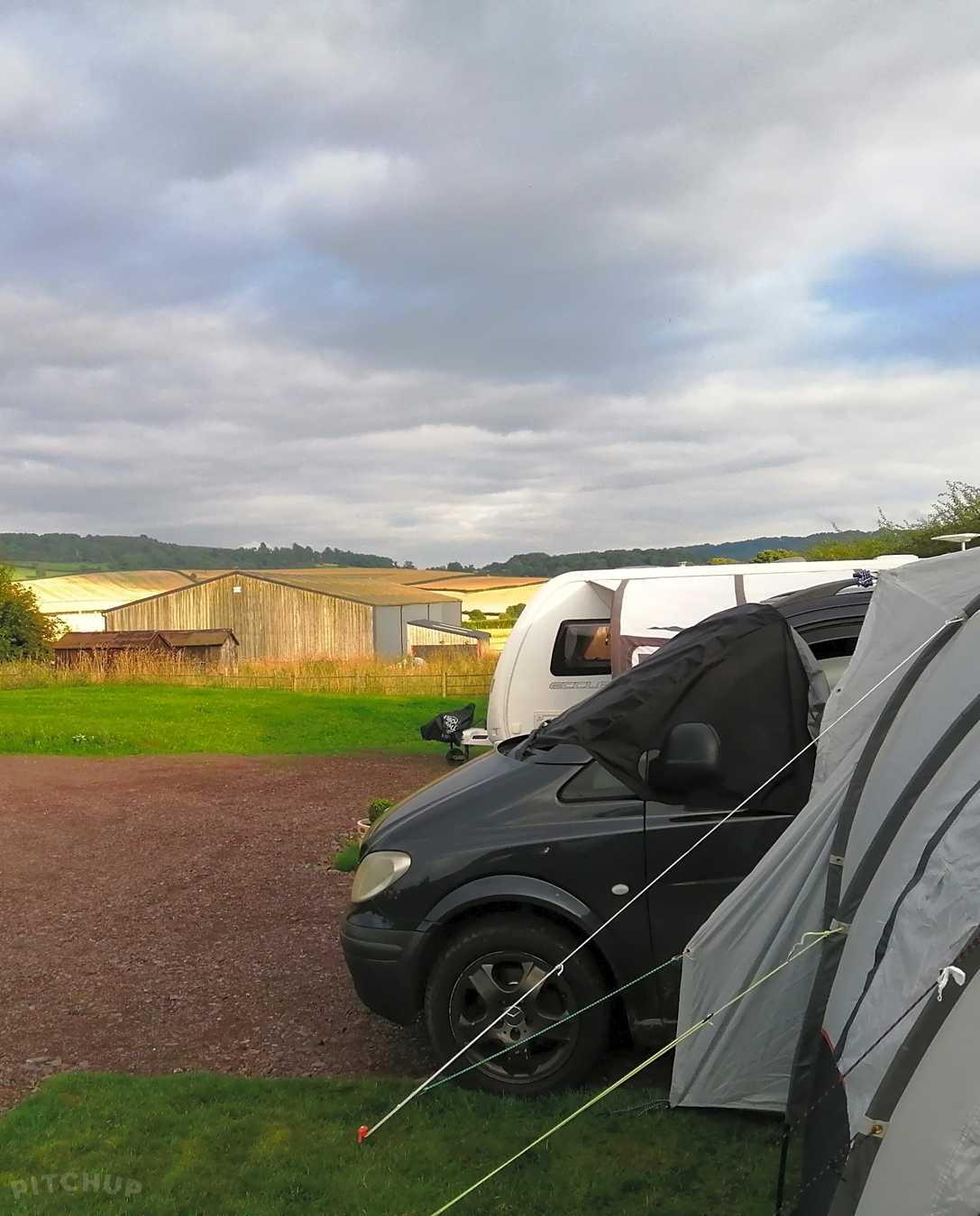 Lovely, small, peaceful site set on a working farm. We were met by Clare on arrival who was lovely. The perfect spot for days out. Fresh eggs in a morning was an added bonus. The views were lovely to wake up to and it was so quiet.I had expected some farm noise especially from the donkeys, but nothing. We came away completely chilled. We will definitely go back and would highly recommend- Jackie B